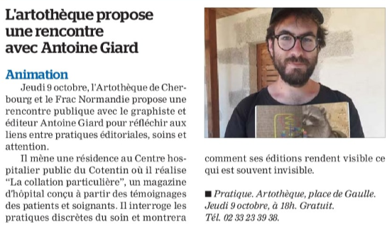 Jeudi prochain à 18h je serai à l'Artothèque de Cherbourg pour parler des liens que je vois entre les pratiques éditoriales et le soin.
